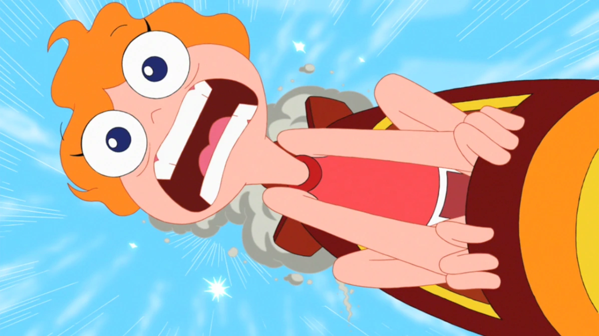 フィニアスとファーブは、トライステートマートの前の児童の乗り物をだますことにしました。リンダが表示されるまで、それはどこにも行くことができないので、それらをバストに決定し、キャンディスはロケットに乗るに座っている。言うまでもなく、乗り心地はオフに撃つとキャンディスはダンヴィル渡る高空飛行のロケットで終わる。一方、ドゥーフェンシュマーツは彼「エアゾール缶でオゾンを破壊しようネーター」を使用して大気中に彼の名前を燃焼することで、レガシーを残すことを計画。