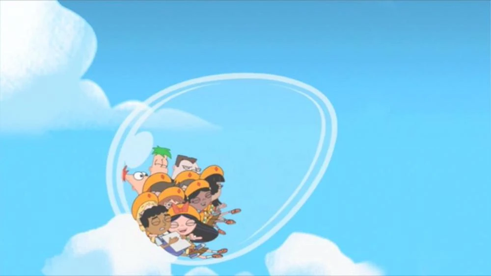 キャンディスは、まだ町の周りの車の上くらい制御なしの少年を追いかけされている。シャボン玉はほとんど鋭利な物体に接近することによりポップが、グループはシャボン玉をそれるように管理してもらう。しかし、シャボン玉は周囲に鋭いポイントで爪状彫像に下降し、バルジートは過呼吸を開始してくる。シャボン玉はゆっくりと上昇し、フィニアスは重く、呼吸を開始するすべての人に伝わる。シャボン玉が上昇すると、バルジート、それはまだ町の周り浮かぶようにリラックスことを決定。