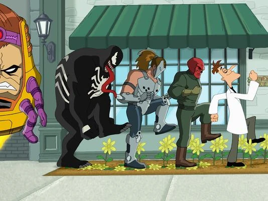 スパイダーマン、アイアンマン、ソーとハルク博士ドゥーフェンシュマーツのパワー·ドレイン "ネーター」は、本発明によって打たれた後に無力に立つ。レッドスカル、むち打ち症、ヴェノムとMODOK - - supervillainsたら博士ドゥーフェンシュマーツは彼らの力のスーパーヒーローの強盗に関与していることを知る、彼らは彼を探し出し、一緒にダンヴィル騒乱を作成します。邪悪な悪役は世界を引き継ぐ前に、一方で、フィニアスとファーブは、スーパーヒーロー 'の力を回復するために、彼らはできる限りのことを行います。
