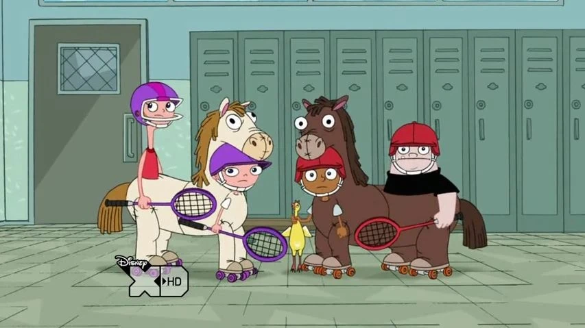 一方、フィニアスとファーブは、ロッカールームでダウンしたFゲームのルールを説明してきた。 Fゲーム用ユニフォームは、2人の馬の衣装、ローラースケート、ヘルメットや各チームのバドミントンラケットで構成されてしまい、バルジートはなくラケットのラバーチキンを持っています。ビューフォードは、それらが「Fゲーム」と呼ばれている理由を知りたい。フィニアスは、それがファーブを指し、これが突然みんなに理にかなって説明しています。バルジート皆が一斉にの「後に」返信したため、ルールのいずれかに明確化を求める。ビューフォードはバルジートが彼を恥ずかしいされているため、注意を払うために彼を訓戒。