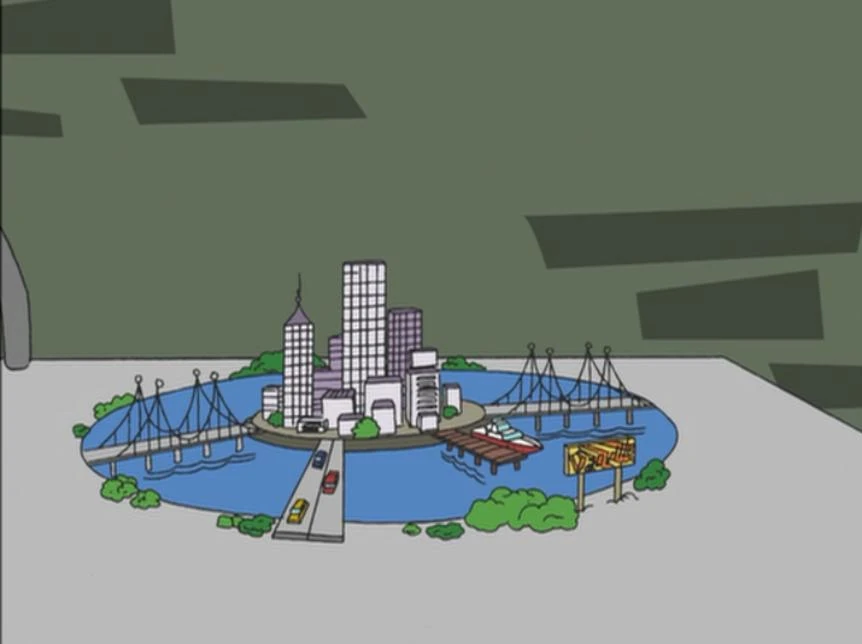『3つの州』(み - -しゅう、Tri-State Area)首都圏エリアの名前であるダンヴィル。悪のドゥーフェンシュマーツ博士は、しばしばこの地域の混乱はなく、ダンヴィル自体の市内を作成する予定です。そのような目的のために、彼は3の州のスケールモデルを構築しました。