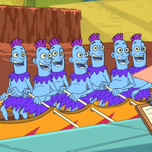 Ba-dink-a-dink | "Toy to the World" | The Ba-dink-a-dinks are a race of blue-skinned humanoids who lived under the Har D Har Toy Company's Danville factory. They were released when Phineas and Ferb remodeled the factory to produce the Perry the Inaction Figure toy line. |