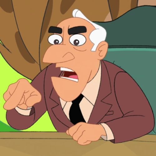 - A man who looks exactly like J.B. appeared as a judge at Heinz Doofenshmirtz's science fair in the episode Unfair Science Fair. As he did not speak, it is impossible to decide whether it was truly him, or simply a reused design. One explanation to him being there is his original job, or he is truly of the country but does not bare a Gimmelshtumpian accent. The latter theory could be supported by the lack of accent by Druelselstein-born Roger Doofenshmirtz. A question is raised as well as to how he could be back then and look the exact same as he does now, which can be answered by real life example Steve Martin, who's had white hair since the 1970's. Because of all the inconsistencies, the appearance can only be a reused animation.