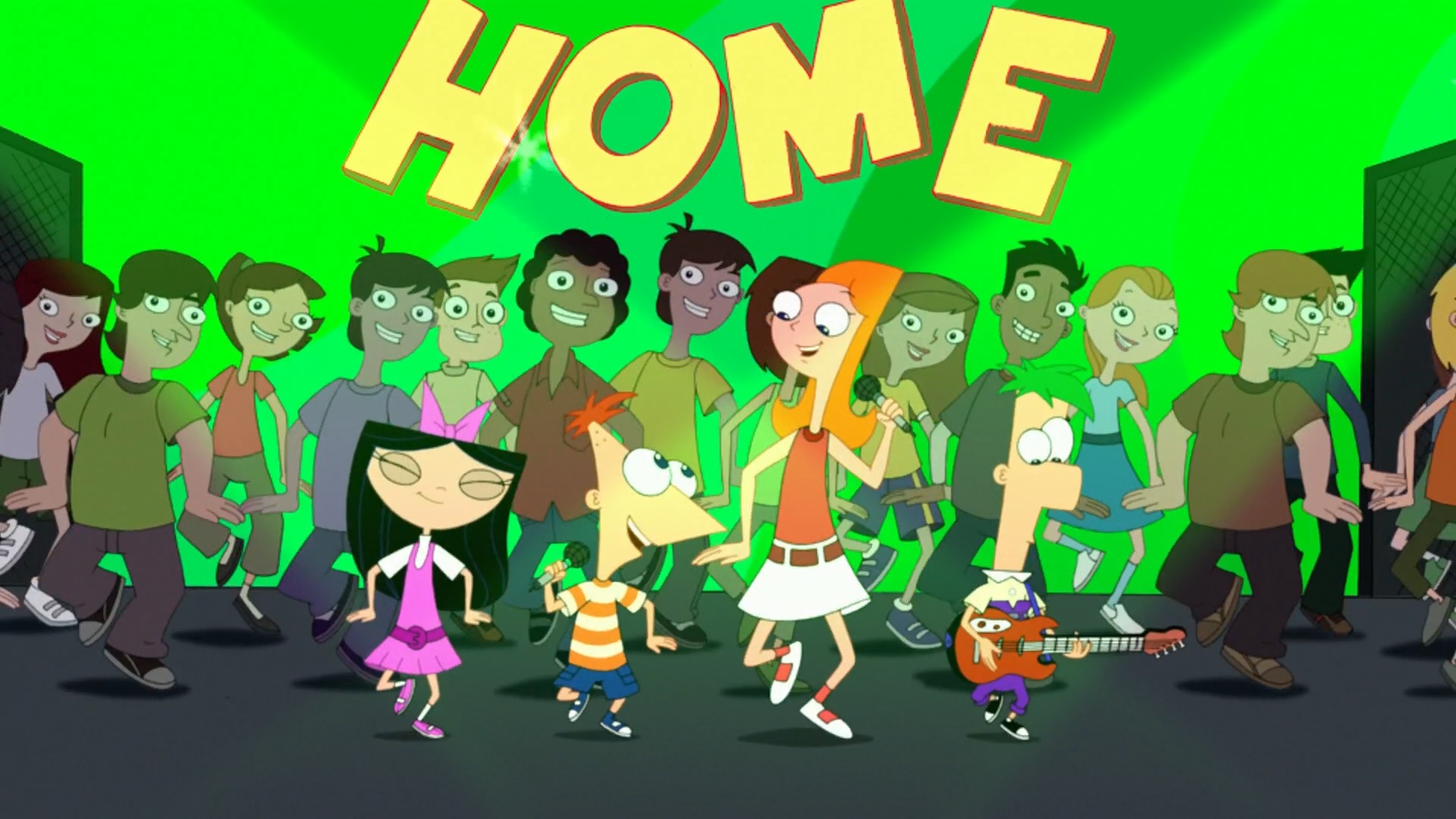 Phineas, Isabella, and Candace singing Summer Belongs to You
