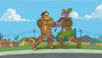 Phineas và Buford đấu vật bằng ngón cái sau khi vô tình làm rơi kem vào người cậu. | Máy Nô lệ của Doofenshmirtz thôi miên các khán giả, ra lệnh họ dọn dẹp mọi thứ. Candace cố chụp một bức hình, nhưng ngón cái của cô che ống kính. | Cả hai xây dựng sân đấu vật ở bãi đậu xe của Thương xá Googolplex |