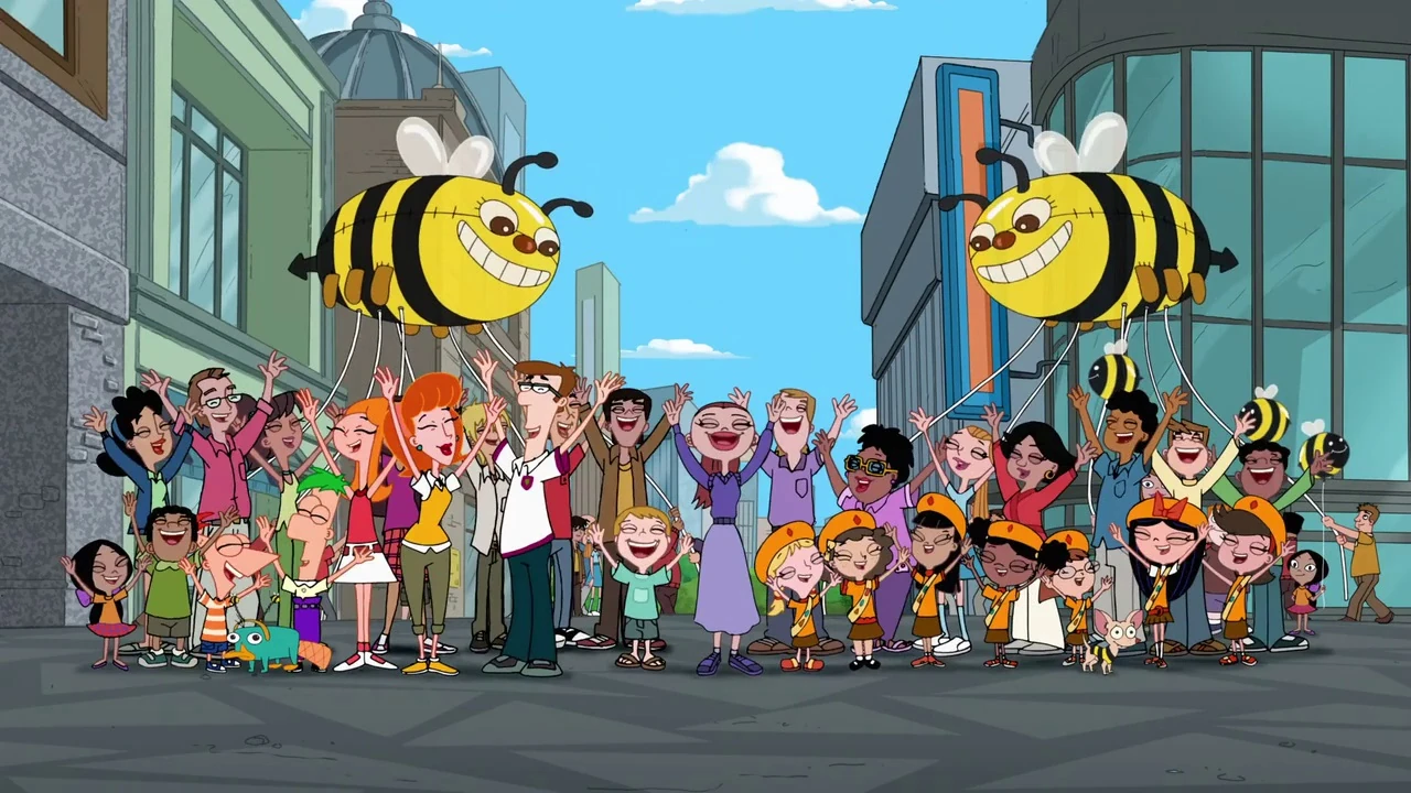 - It appears as if the boy next to Phineas is leaning against Phineas' head.