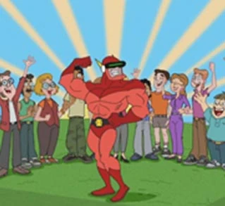 Captain Implausible is a superhero in a series of cartoons featured on The Pinhead Pierre Show!. He has "virtually every superpower there is", which makes him a formidable hero. The powers he was seen using are, but are not limited to, the ability to fly, super speed, super strength, and the ability to survive in space. ("Out of Toon") He was the cartoon that inspired Phineas and Ferb to make "Team Improbable".