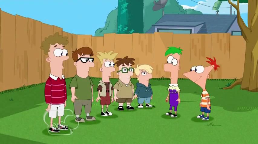 | "Oh yes. Very British." — Beckham (blond), sarcastically, about about Ferb not seeming to be as British as Phineas says |