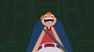 The bowling ball is destroyed along with the penguins, and Heinz and Candace go flying.