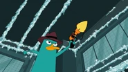 Perry uses the bowling ball to destroy the penguin army [ ]