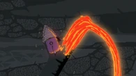 Lava breaks the surface causing Candace's part of the monument break.