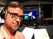 Doofenshmirtz shows Vanessa a news report about the election, which Roger is addressing as he is about to announce the final results to the public.