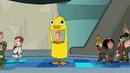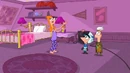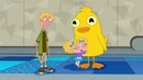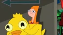 The camera cuts to Phineas and Ferb's scene with the finkies and speckies arguing after the song "Ducky Momo is my friend" finishes.