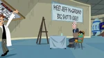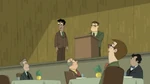 A speckie at the bathroom door shows Phineas and Irving's way to see the council.