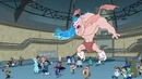 Albert uses a magic wand to defeat Phineas and Ferb's CGI monster.