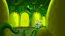 Ducky Momo gets tossed in the air and comes back down after defeating the monster.