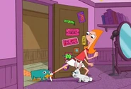 Perry pulls a switch causing the carrots to fall in the backyard.