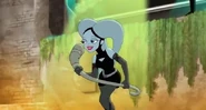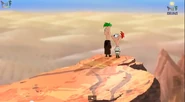 Phneas saves Candace. (Notice Luke and Leia swinging in the background). By