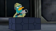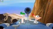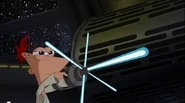 Meanwhile, intergalactic chaos erupts on the Death Star when Perry the Rebelpus is trapped in carbonite while trying to stop Darthenshmirtz from using his new "Sith-inator." The saga takes a turn for the worse when Ferb is accidentally caught in the crossfire of the "Sith-inator," changing him into a full-fledged Sith and leading to an epic first-time battle between the brothers.