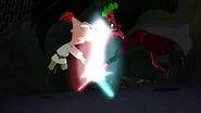 Phineas and Darth Ferb fighting in a Disney XD promo