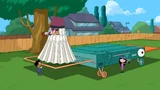 Zooms out to show that it almost impacted Phineas, Ferb, and Agent P