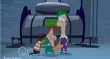 Phineas peaks at Doof-2 prior defeating him