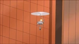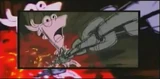 Doof-2 throwing a razor disc to stop Phineas from getting to the portal.