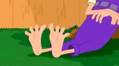 2nd Dimension Doof puts his hurt foot down after his sidekick accidentally lands on his foot.