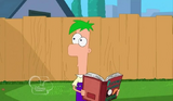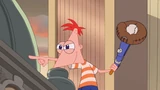 Phineas runs over there to grab the baseball launcher