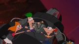 Perry is shocked to see that Phineas and Ferb have arrived at Doof's place