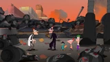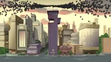 Aerial view of 2nd Dimension with Doofenshmirtz as their leader.