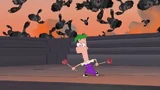 Phineas dodges from Doof-2 from being hit from a lamp