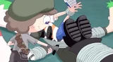 Doof-2 pulls the lever that allows the arm flying with a punch