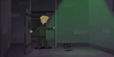 Doofenshmirtz 2 turns his head to Phineas after he hears Phineas trying to reach the portal.