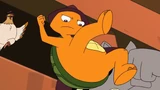 Doof-2 throws a wet couch cushion at Phineas