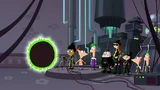 Doof entering through the portal into the other dimension