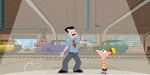 Phineas swirling his baton at the beginning of Hey Ferb!
