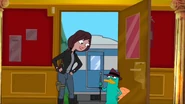 Perry is informed that he's on Canadian soil by the motorist, who is revealed to be COWCA Agent Lyla Lolliberry.