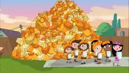 Craziness has ensued in Danville and no one has any idea what’s going on. The wackiness unfolds when Phineas and Ferb create Cheesetopia, Doofenshmirtz makes Perry his butler with his Butler-inator, and Carl is trapped by Doof while in a squirrel costume. All is explained, in an episode of Phineas and Ferb that starts at the end and works its way back to the beginning.