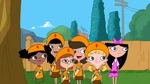 The Fireside Girls' ribbons (some of them only seen in the wide screen version)