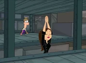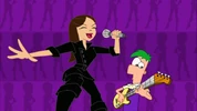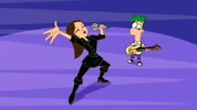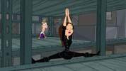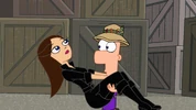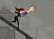 Ferb swinging to Vanessa's rescue