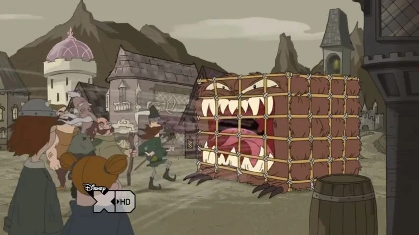 - The game "Poke the Goozim with a Stick" used in the Doom Palace is renamed "Poke the Goozim with a Stick, Surrounded by lava" (Phineas and Ferb the Movie: Across the 2nd Dimension)