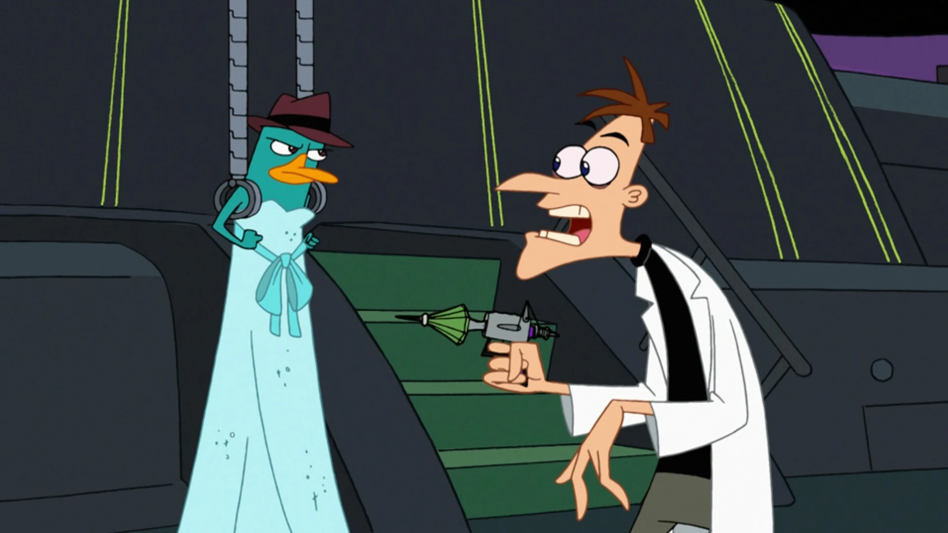 Doofenshmirtz makes a Musical-Videoclip-Inator, which is actually a Musical-Video-Mind-Control-Inator. | Perry breaks everyone out of their hypnosis by playing the #1 song, never before seen in an extended edition. |