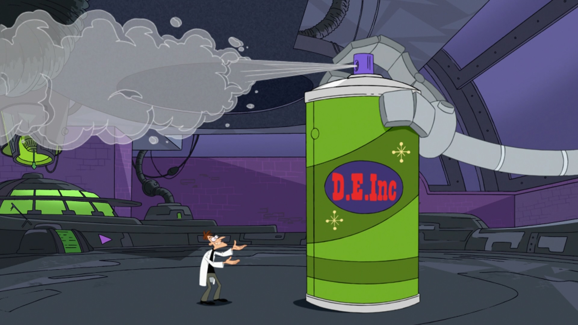 He plans to get rid of the people at the mid-summer festival by putting a liquid that smells like dirty diapers into his Smell-inator, thus getting everyone to leave because of the smell. | Doof, not realizing it, accidentally puts in a growth formula that fell into his hands after Blanca Dishon and P. P. Otter had a fight over it, and a hit against the machine after he put the formula into it causes it to enlarge the entire universe. |