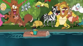 - The song seems to be a parody of the ride at Disney World and Disneyland, Splash Mountain, which includes log-boats floating down a river and singing woodland animals. It is also a parody of It's A Small World, which includes singing animals, and at the end of the ride, they have farewells from different countries (the farewell is at the end in which it says "Aloha", which means "good bye" in Hawaiian).