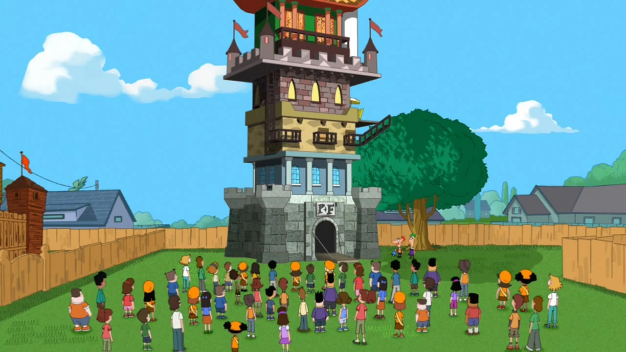 The Phineas and Ferb's backyard fort is built when Phineas and Ferb competed with Thaddeus and Thor to see who could build the best backyard fort ("Thaddeus and Thor"). As expected, Phineas and Ferb's fort turned out to be much larger and cooler than Thaddeus and Thor's.