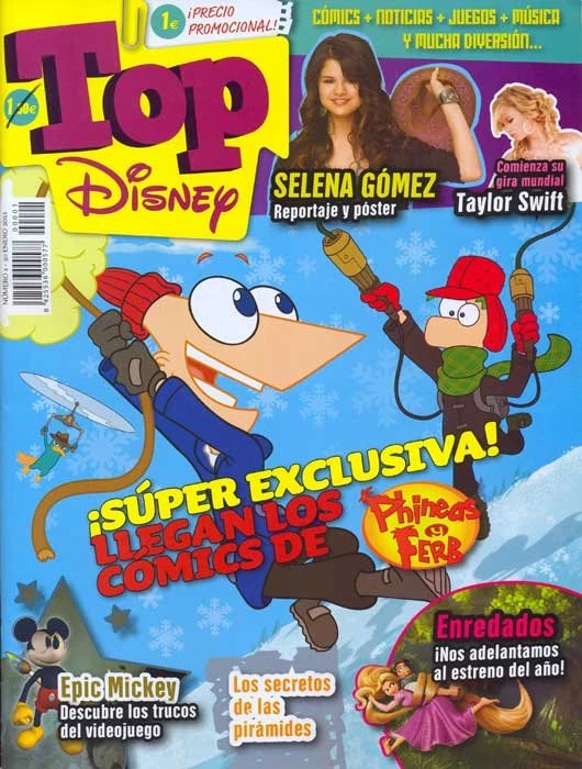 Top Disney Magazine | Spanish publication engaged on Disney properties and stars. Various issues syndicated Phineas and Ferb comics. | €1.50 | Dispensed via subscription and at local newsstands. |