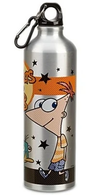Chromed Water Bottle | Aluminum water bottle with Phineas, Ferb, Perry and the show's logo drawn in a chromed pattern on the sides. | ||