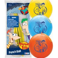 Phineas and Ferb Punch Ball | Punch ball parcel stocking 3 springed balls in yellow, blue, and orange inscribed with Phineas, Ferb, and the logo. | ||