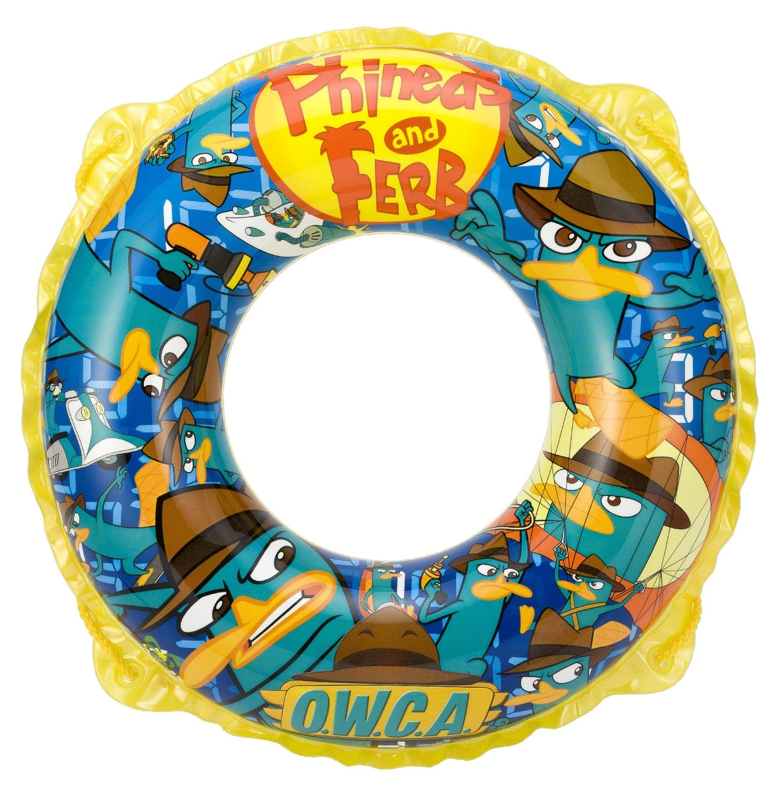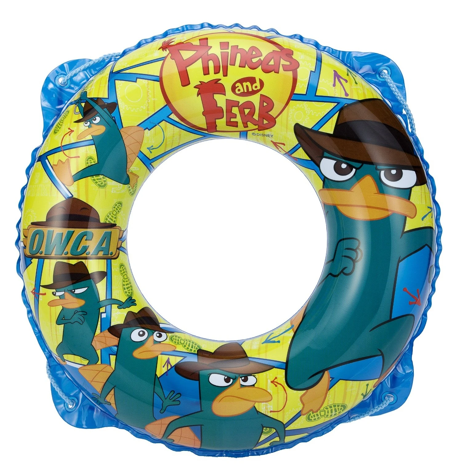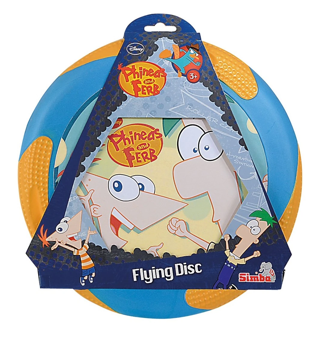 Phineas and Ferb Frisbee | Frisbee stamped with an art of Phineas, Ferb, and Agent P in its front. Contains an advert for the Watch Disney apps. |